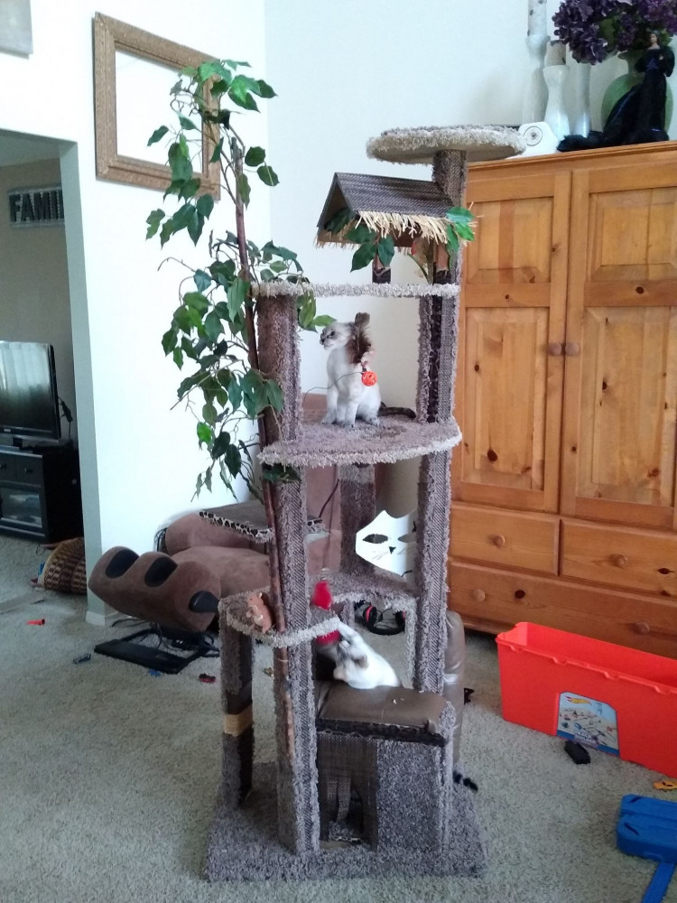 I have started making cat condos since Nov. of 2012 in Kalama WA. Since then I have perfected my work. I make to be sturdy, strong, and with new pet friendly/non-toxic materials. Every Condo I have made is an original design, No two are the same. I take pride in my work and along with making cats and their masters happy. I get the opportunity to get to know and be part of the community along with getting to enjoy my artistic side as well.